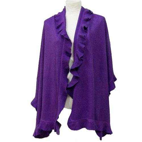 PURPLE KNIT RUFFLE EDGE PONCHO SHAWL CLOAK WRAP CAPE Overview