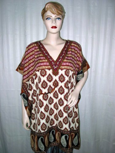 Resort Wear Ethnick V Neck Floral Print Satin Crepe Cream Short Caftan Tunic Top Poncho Free Shipping Overview