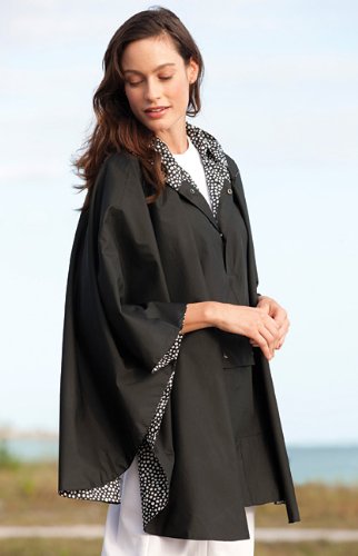 From the iconic Finnish design house Marimekko, this smart, take-along rain poncho for women is enlivened with a crisp black-and-white-print lining. Stash in the car, a tote, or carry-on luggage. Roomy pullover design fastens with a snap placket. Adjustable hood with drawcord. Women's rain poncho in black. One size. Polyester. Hand wash. Imported.| Brand: | |