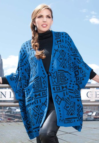 Jacquard patterned plus size poncho sweater has kimono sleeves, patch pockets and a single toggle button closure.32" longAcrylic knitMachine washImportedPlus size poncho sweater - women's sweaters, ponchos and capes| Brand: | |