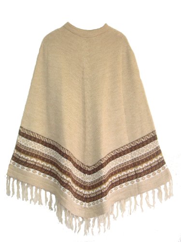 Peruvian Alpaca beige wool poncho, handmade in Peru, beautiful design that combines amazing bright colors and is absolutely warm, soft and silky and is more confortable to wear in the Winter. You have to feel the elegance and advantages of this Peruvian alpaca. Is considered a specialty fiber because less alpaca fiber is produced each year than cashmere, angora rabbit, sheep or mohair. However, alpaca is considered a luxury fiber because of its unique softness, luster, lightness, durability and warmth. No other animal has fiber that can combine all these properties. This is a very nice, versatile and useful garment!. Is reported to be up to 5x warmer than sheep wool and unlike sheep wool will not absorb moisture but rather transport it through the fabric so it can evaporate on the outside. ONE SIZE LENGHT APPROXIMATE 38'' INCLUDE STRIPES XXXXXXXXXXXXXXXXXXXXXXXXXXXXXXCONTACT US WE ARE ABLE TO MAKE SPECIAL ORDERSBrand: | |