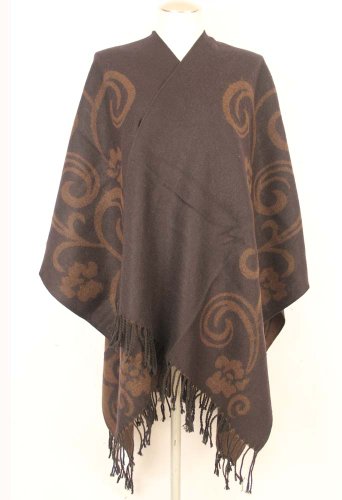 This pretty ruana wraps around the shoulders (like a poncho) and can be worn in several styles such as -Standard Poncho Style,Poncho style with your favorite belt around the waistline,Tied in a Half-knot,Pinned with your favorite broach. It measures approximately 50" across, 36" long in front and 42" long in the back.| Brand: | |
